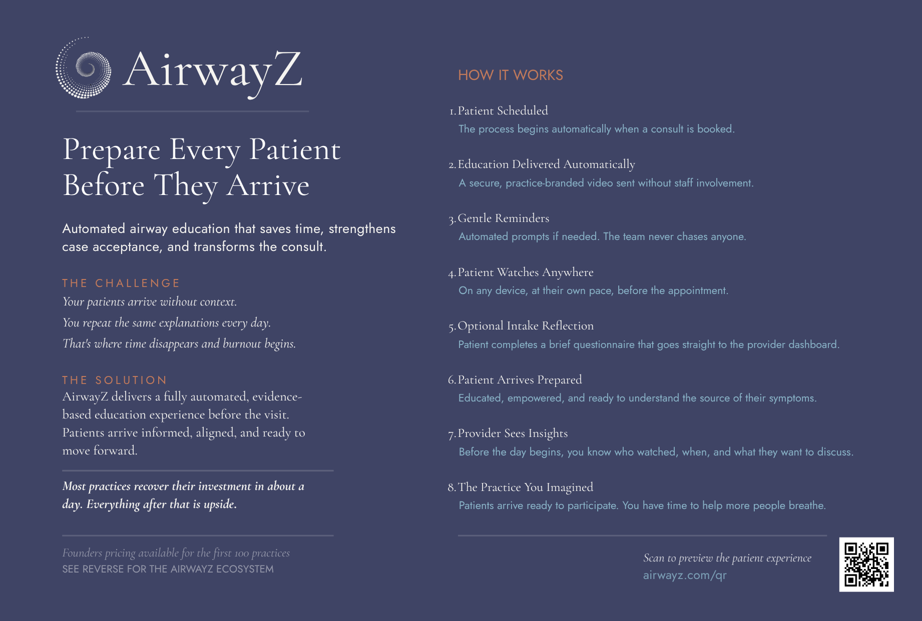 Together we are shifting the paradigm to treat the origin, not just the symptoms. For too long, airway health has been fragmented across disciplines. AirwayZ brings it back to where it belongs, at the center of care.